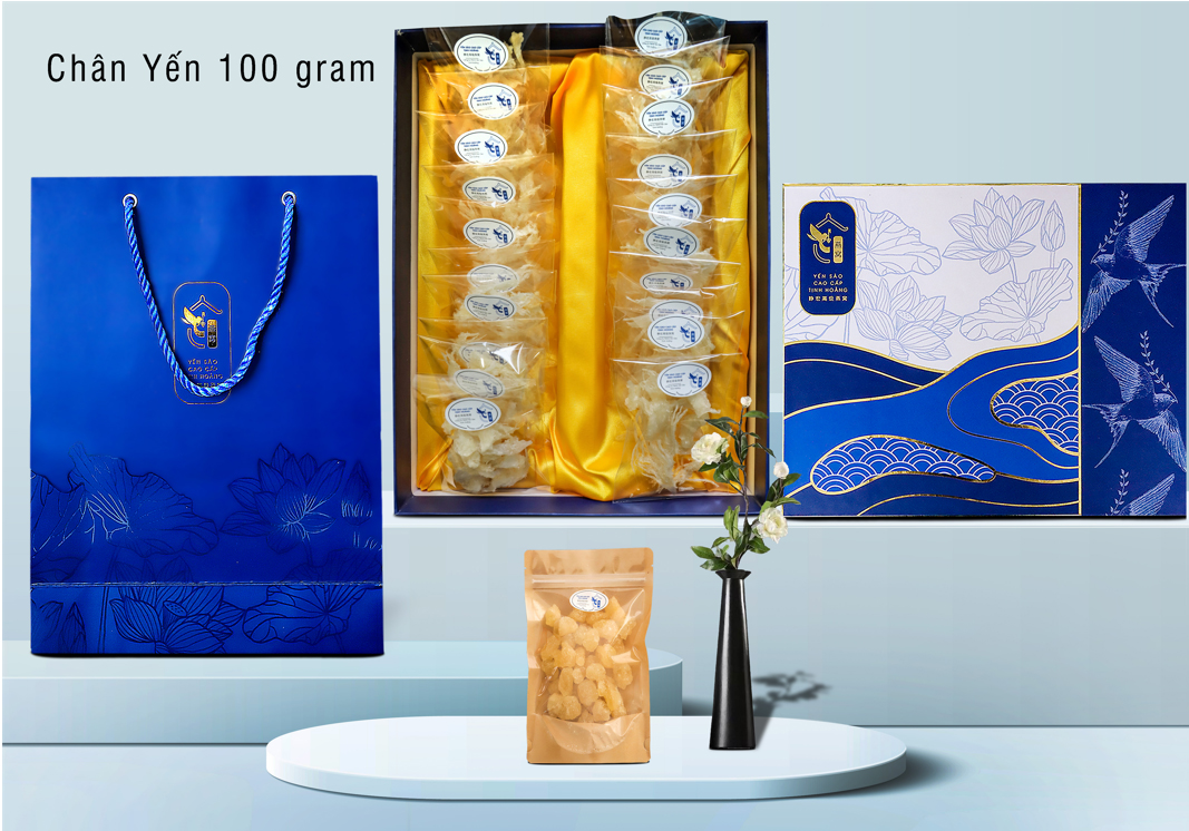 Là phần nối đế giúp cố định tai yến vào bề mặt như vách đá hay thành nhà. Chúng hơi khác với phần tổ, nếu như tổ yến là nước bọt kết cấu dạng sợi chồng thành lớp mỏng thì chân tổ yến thường là một khối khá lớn và dày. Vậy nên chân yến cũng là 1 phần của tổ yến, những kết cấu chắc chắn hơn nhiều.