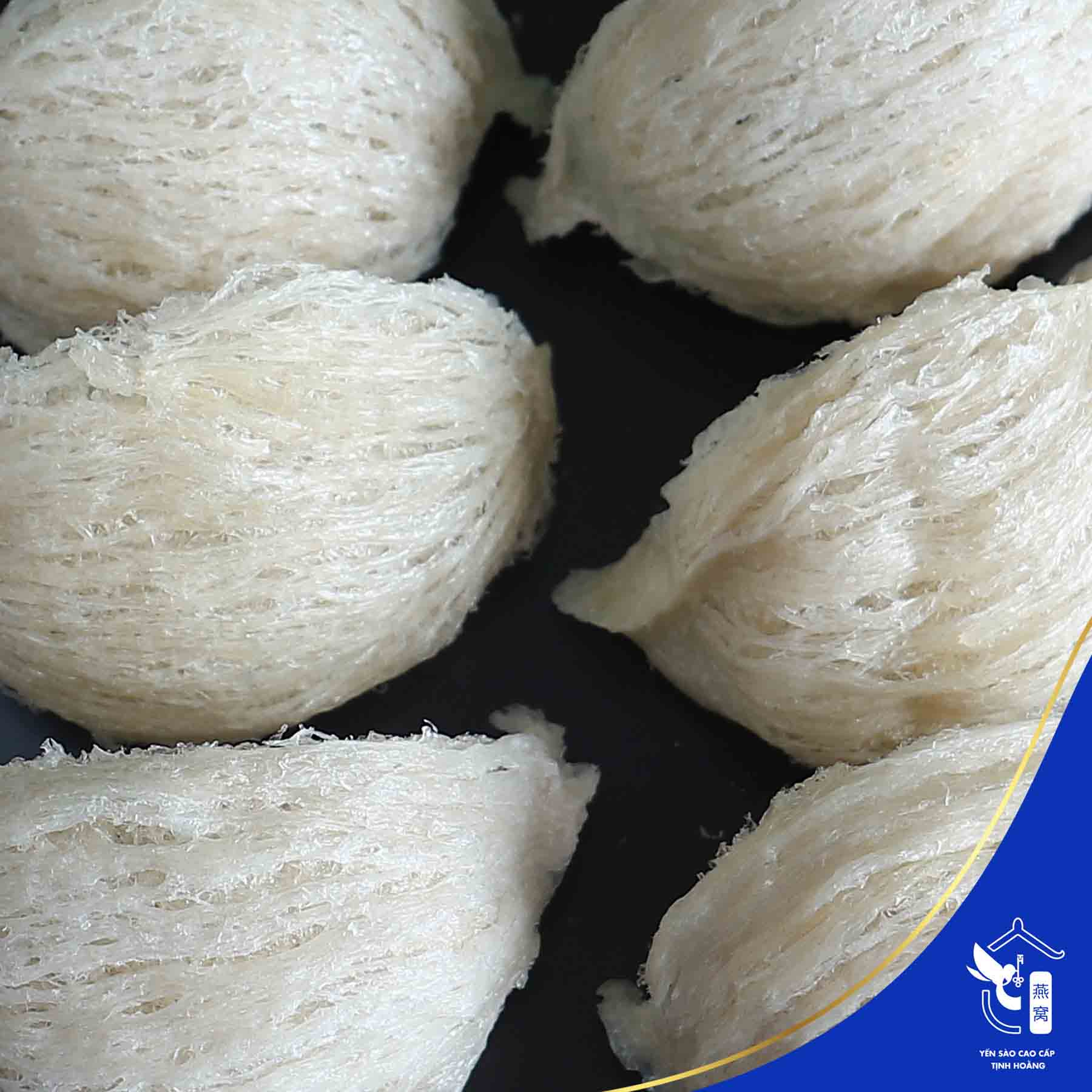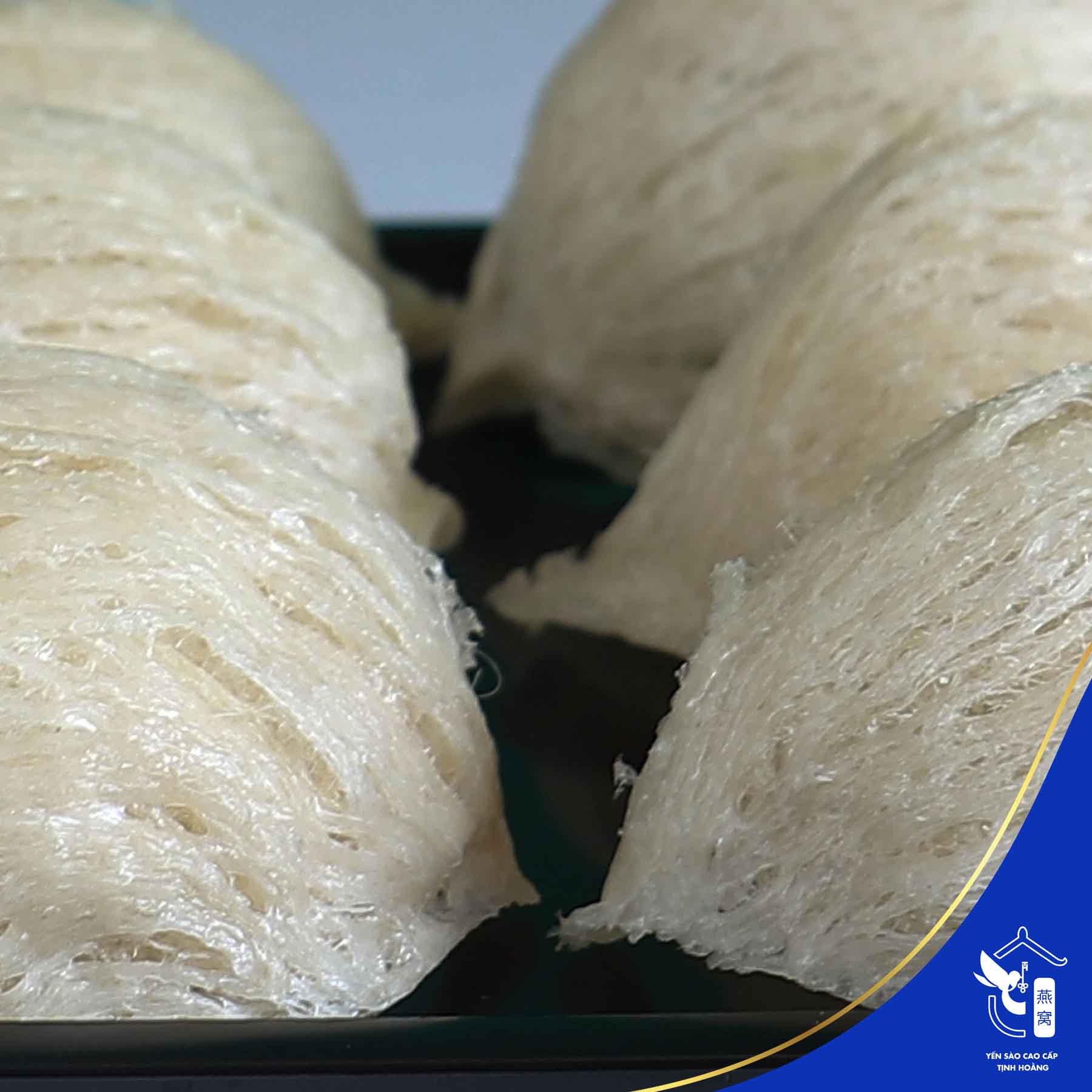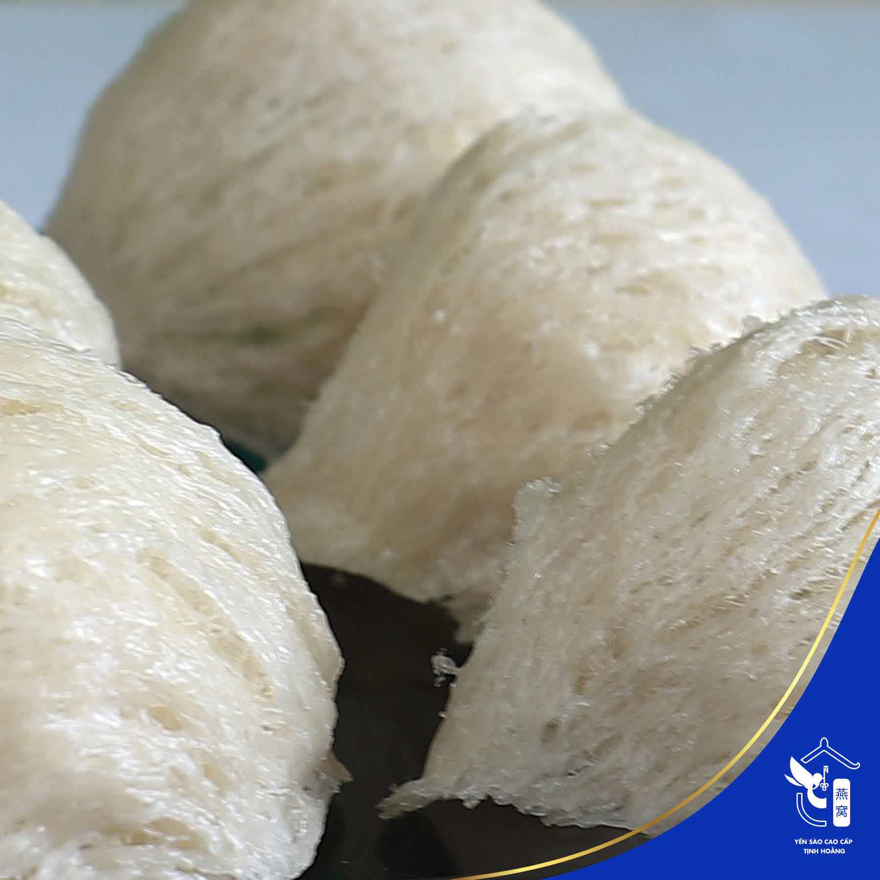- Sợi yến già, dày, chắc chắn và có độ nở khi ngâm chế biến